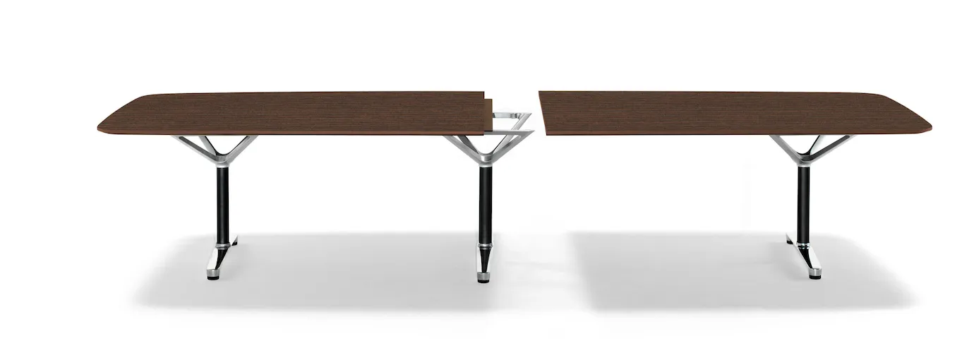 - Repräsentative Größe: Die zweiteilige Tischplatte ermöglicht großzügigen Platz für Konferenzen mit vielen Teilnehmern.