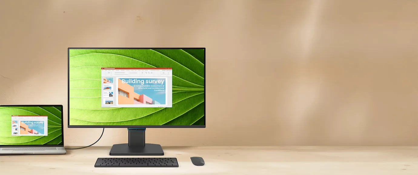 Ein hochwertiges IPS-Panel bildet die Basis für eine exzellente visuelle Performance bei professionellen Anwendungen und in der Freizeit. Mit einer Farbraumabdeckung von 99% sRGB stellt der Monitor Dokumente, Grafiken und Videos originalgetreu dar, während die weiten Betrachtungswinkel dafür sorgen, dass die Kontraste auch bei seitlichem Blick stabil bleiben. Das nahezu rahmenlose Gehäuse unterstützt Sie dabei, sich voll auf Ihre Inhalte zu konzentrieren, und ermöglicht zudem ein harmonisches Setup bei der Nutzung von zwei Monitoren nebeneinander. Das schlichte und klare Design fügt sich nahtlos in jede moderne Arbeitsumgebung ein und schafft eine professionelle Atmosphäre, die Ihre Produktivität steigert. Ein aufgeräumter Arbeitsplatz ist die Grundlage für effizientes Arbeiten.