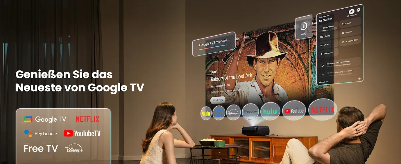 JmGO O2S Ultra Tri-Laser-TV-Projektor mit Google TV