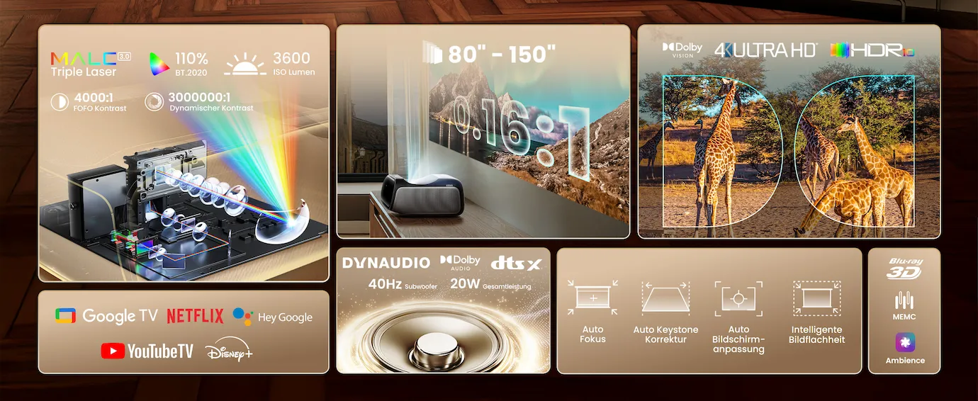 - Gestochen scharfes 4K-Bild: Dank der MALC™ RGB Pure Triple Laser 3.0 Technologie genießen Sie lebendige Farben und feinste Details für ein realistisches Seherlebnis.