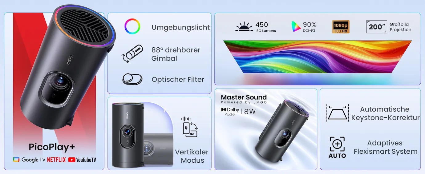 | Name | JmGO PicoPlay+ tragbare Full HD Beamer mit integriertem Google TV und nativem Netflix |