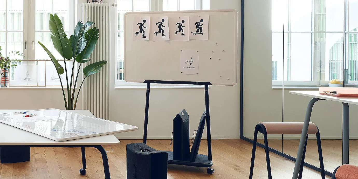 Ein effizientes Workshop-Tool muss intuitiv bedienbar sein, um den Fokus auf der eigentlichen Aufgabe zu belassen. Der Sedus se:lab rack Whiteboardwagen bietet Platz für bis zu zwei Boards der Größe L im Hochformat oder vier Boards in den Größen M/L im Querformat. Die Konstruktion aus hochwertigem Rundrohr ist nicht nur stabil, sondern folgt einer modernen Designsprache, die sich harmonisch in jedes Bürokonzept einfügt. Ob als zentrale Präsentationsfläche oder als funktionaler Raumteiler in Open-Space-Bereichen – das se:lab rack bietet vielfältige Anwendungsszenarien für den modernen Arbeitsalltag.