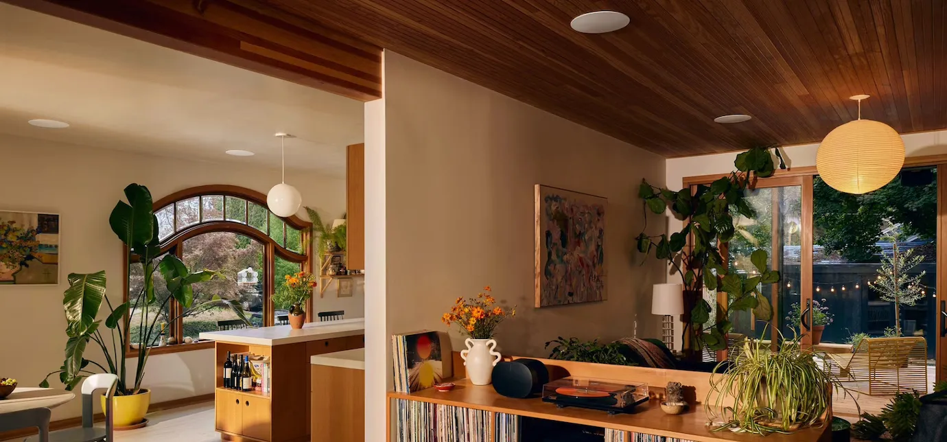 Bei fest installierten Audio-Lösungen spielt die optische Integration eine zentrale Rolle. Die runden Gitter der In-Ceiling Speaker lassen sich farblich exakt an Ihre Decke anpassen, da sie vollständig lackierbar sind. Das spezielle Design der Abdeckungen sorgt dafür, dass die Technik im Hintergrund bleibt. Die Installation erfolgt effizient durch das Roto-Lock®-System, das eine schnelle und sichere Montage direkt in der Decke ermöglicht. Da der Sonos Amp stark genug ist, um bis zu drei Paare dieser Lautsprecherparallel zu betreiben, lassen sich auch größere offene Wohnbereiche mit nur einem Verstärker effizient beschallen.