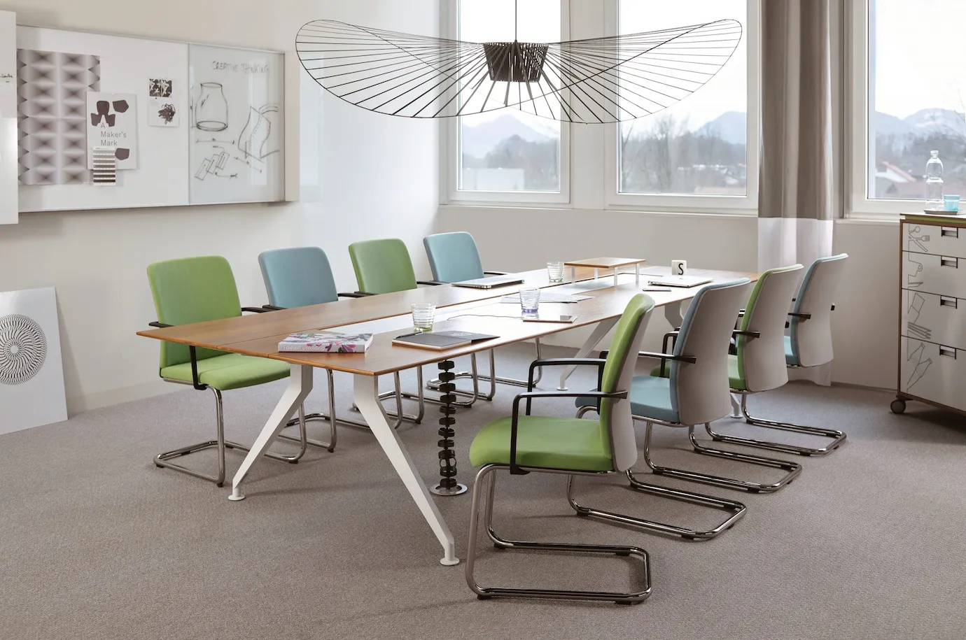 - Optimale Beinfreiheit: Die reduzierte Anzahl an Tischbeinen schafft maximalen Komfort auch bei langen Besprechungen.