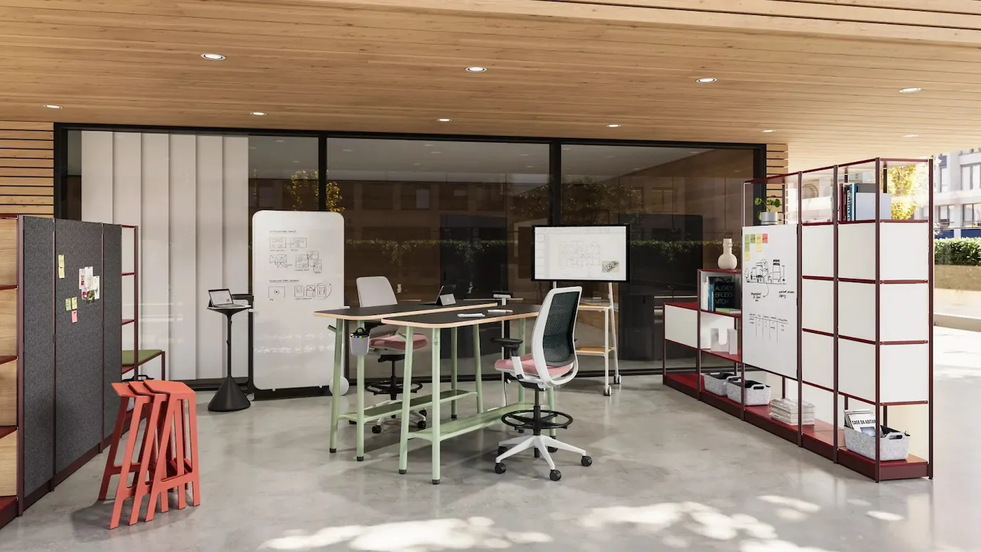 Der Steelcase Flex Tisch eignet sich speziell für den kurzen Austausch oder Besprechungen im Stehen. Durch die integrierten Gleiter bleibt der Tisch mobil und lässt sich schnell an Räume anpassen. Diese Flexibilität ermöglicht es Teams, ihre Arbeitsbereiche nach Bedarf zu gestalten. Die schmale Bauweise spart wertvolle Bodenfläche und ermöglicht die Integration in Nischen oder Durchgangsbereiche, wodurch auch begrenzte Flächen effizient genutzt werden.