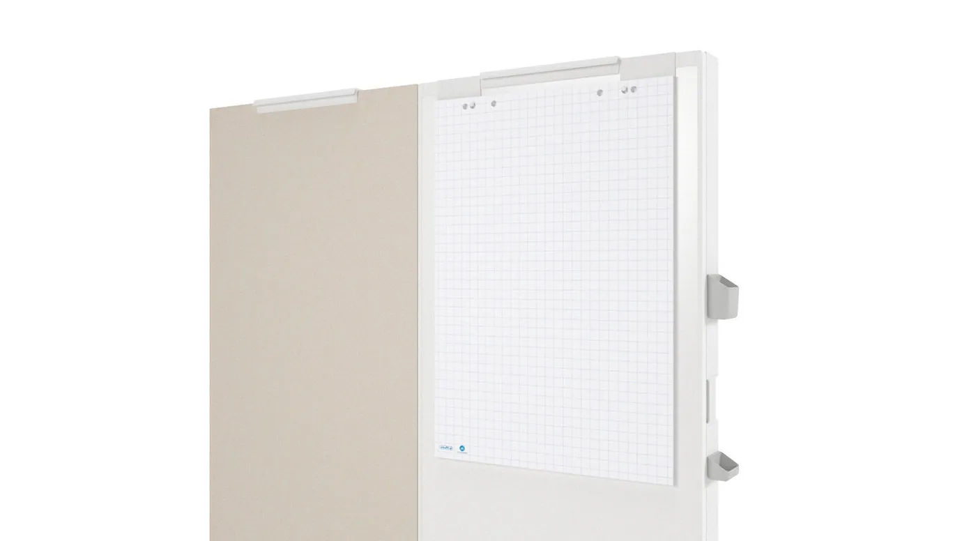 Der Flipchart-Halter ist die ideale Ergänzung für alle, die ihre Vitra Dancing Wall 2 als multifunktionales Zentrum für Kreativität nutzen möchten. Er erweitert die bestehenden Funktionspaneele um eine klassische Papierlösung und schafft so den nötigen Raum für haptisches Arbeiten in einer digitalen Welt. Durch die einfache Integration bleibt Ihr Team flexibel und kann Ideen sofort visualisieren, ohne den Fokus zu verlieren.