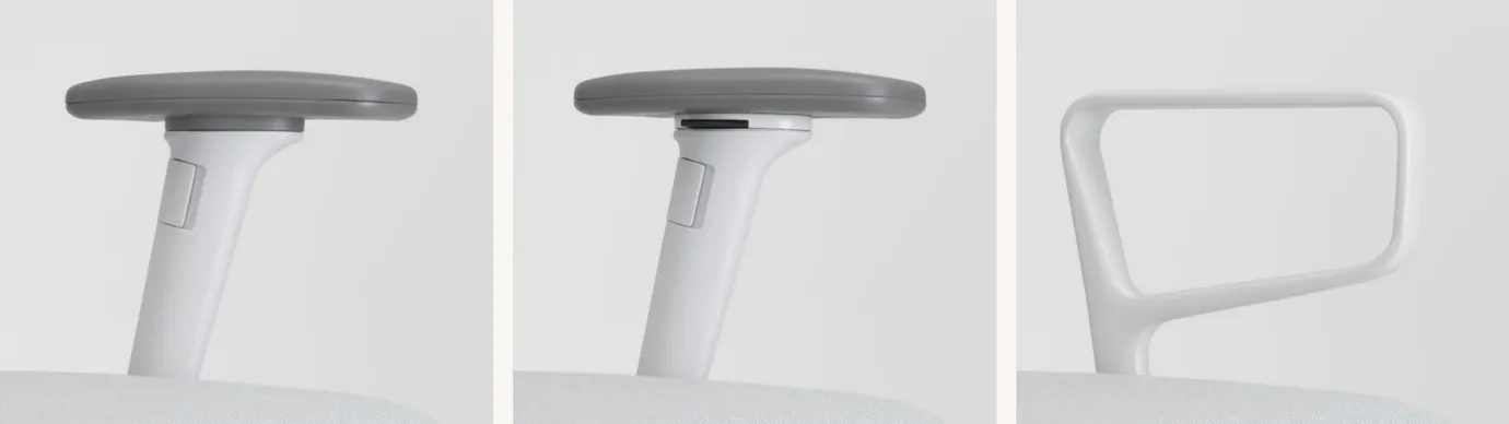 - Rahmen und Armlehnen: Die Rahmenfarbe ist wählbar in Basic Dark oder Soft Grey. Bei den Armlehnen können Sie zwischen Ringarmlehnen, 2D- oder 3D-Armlehnen wählen – je nachdem, ob Sie lediglich eine Höhenverstellung oder eine vollständige Anpassung in Höhe, Tiefe und Winkel wünschen.